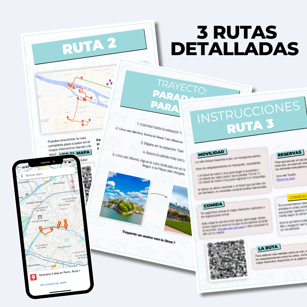 Incluye la visita a 43 lugares, con recorridos diarios, mapas interactivos, indicaciones claras y consejos prácticos para aprovechar al máximo tu tiempo en la ciudad.
